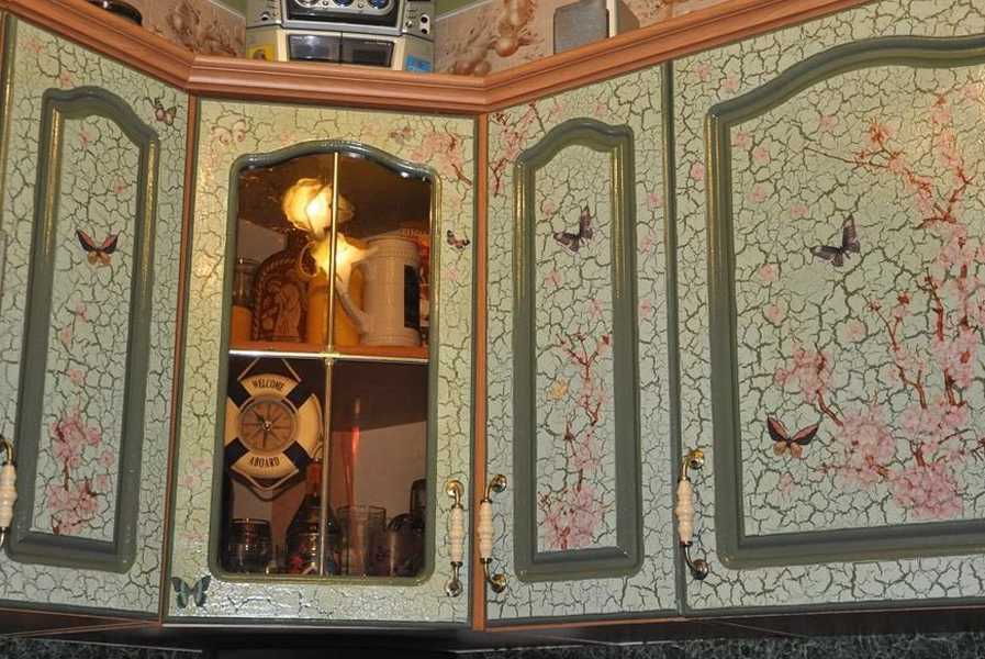 Получить необычный гарнитур при помощи простейших средств позволяет технология под названием декупаж. С ее помощью можно перекрашивать фасады из любых материалов, главное – оригинальный замысел и его точное исполнение.