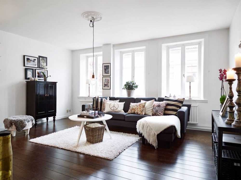 На современные дизайнерские идеи гостиной особое влияние оказывает скандинавский стиль. Он сочетает в себе легкость, простоту, элегантность.