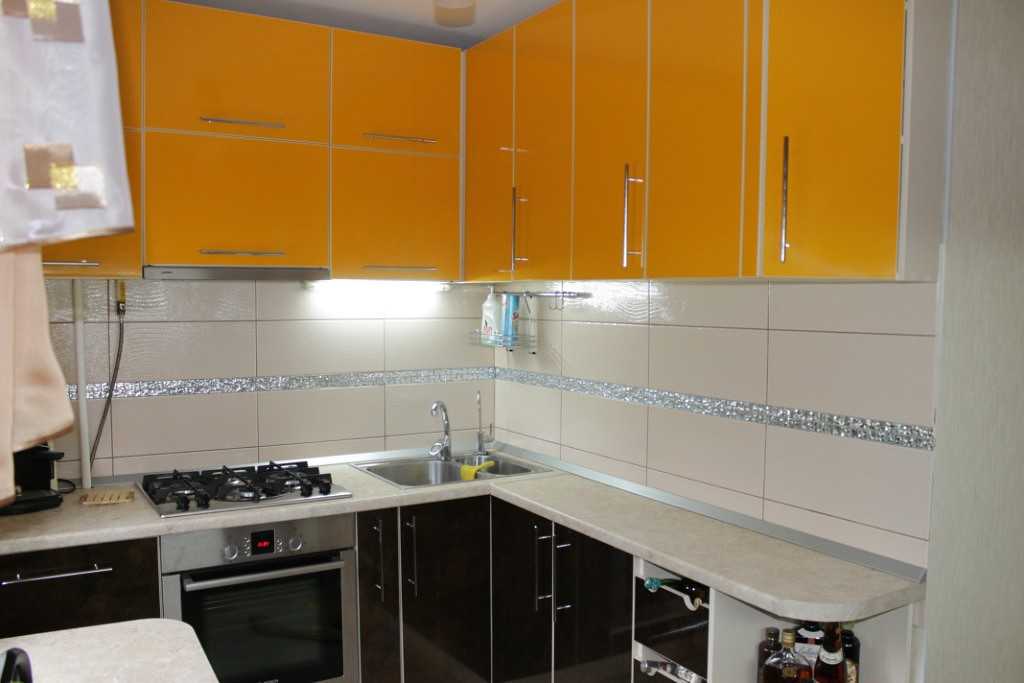 Совет! Выбирая цвет для маленькой кухни, не всегда стоит прибегать к ярким тонам. Часто дизайнеры советуют выбирать гарнитур в пастельных желто-зеленых оттенках.