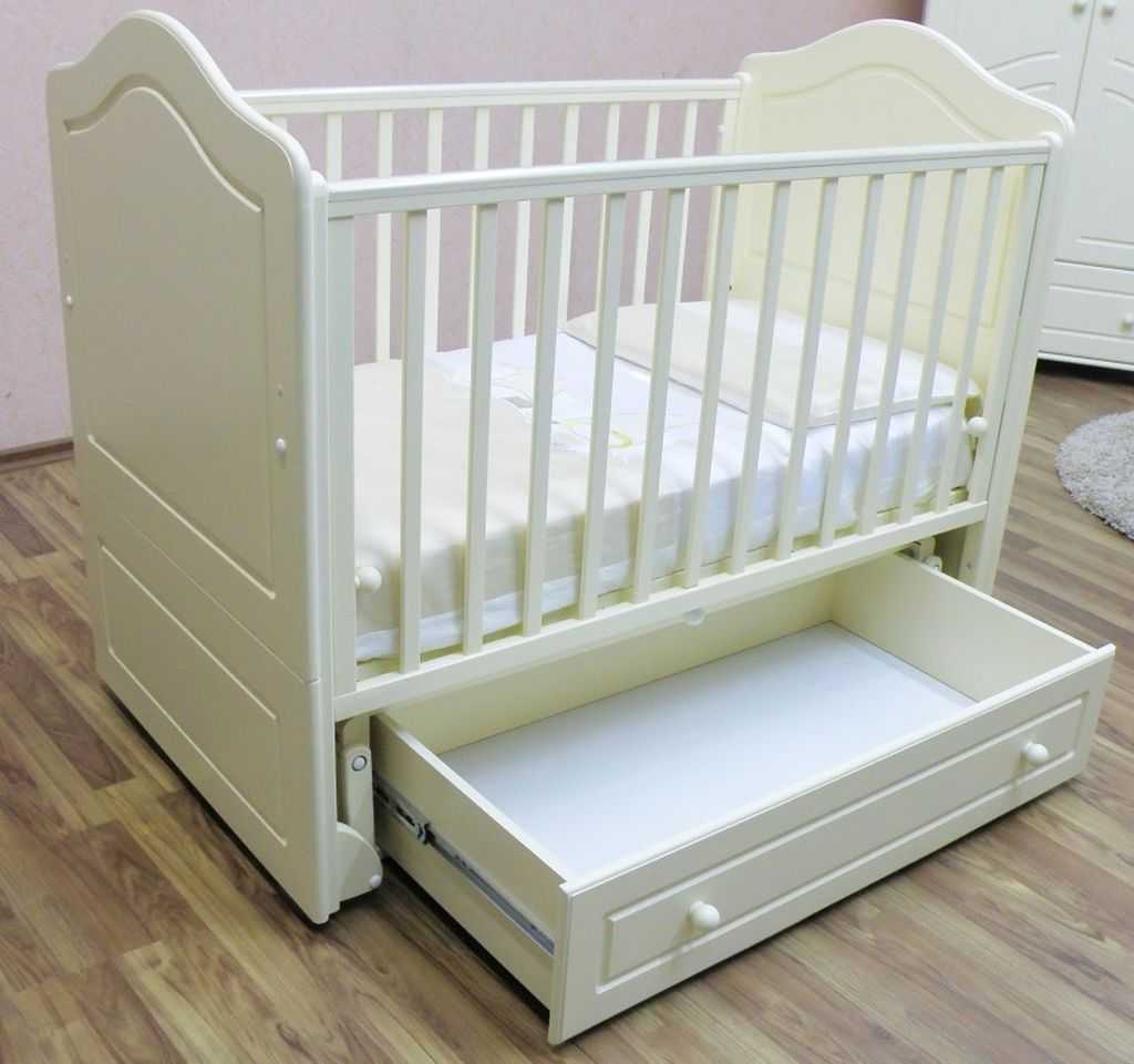 В целом кроватка для малыша собирается в том же порядке, что и взрослая, правда с несколькими тонкостями. Детские кроватки для малышей бывают несколько видов и имеют два уровня расположения опоры под матрасик, детали позволяющие качать колыбель, а также дополнительные ящички или пеленальный столик с комодом.