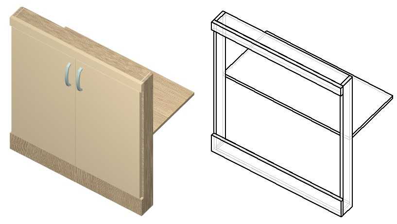 Есть и более экономичный вариант. Для этого покупают фасады (фасад), которые бы в точности соответствовали фасадам кухонного гарнитура. Их заказывают в той же мастерской, где изготавливалась мебель. Под фасад самостоятельно выполняется коробка из деревянных брусов.