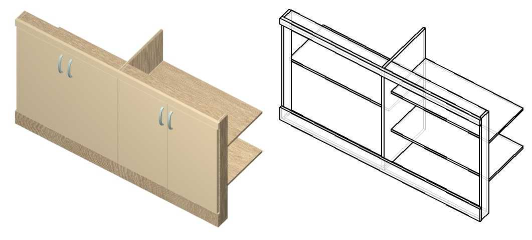 С учетом всех особенностей конструкции, расчет размеров деталей (деталировка) можно записать в табличной форме, с указанием сторон для наклеивания кромки.