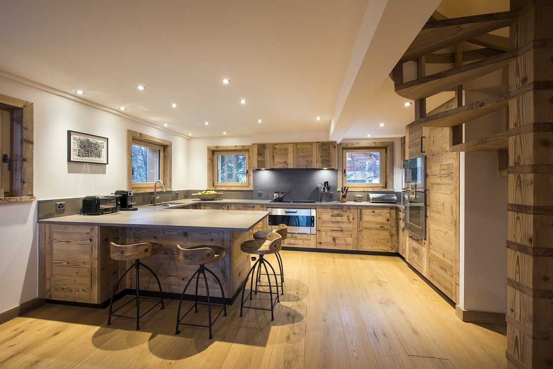 Стиль похож на лофт или кантри. Предпочтение отдается натуральным материалам, стены часто отделывают кирпичом, деревом или камнем. Кухня должна быть просторной.
