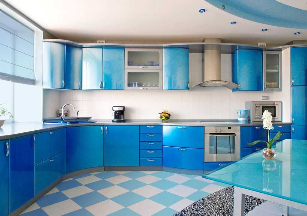 Стиль интерьера модерн в бело-голубой кухнеИсточник kazan.hausdorf.ru