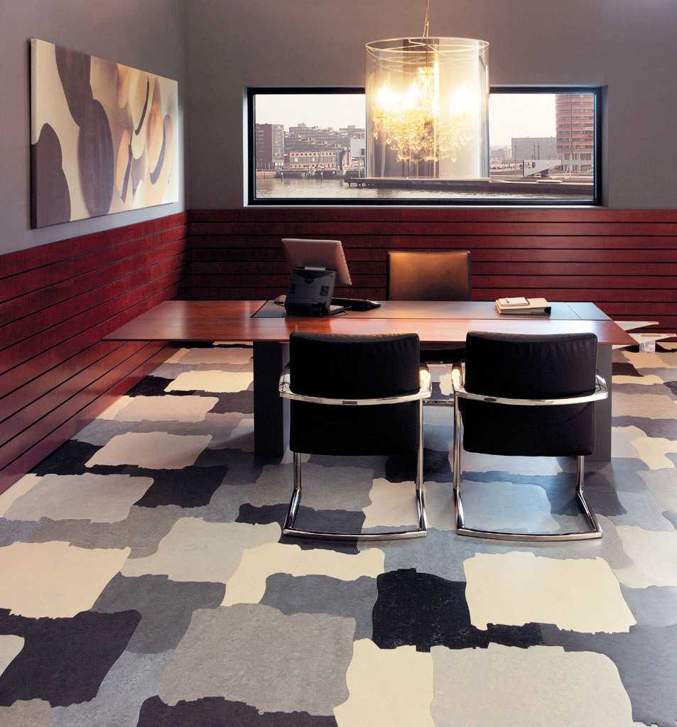 У современных линолеумов повышенная износостойкость. Это отличный вариант для офисов и помещений с достаточно высокой проходимостью.