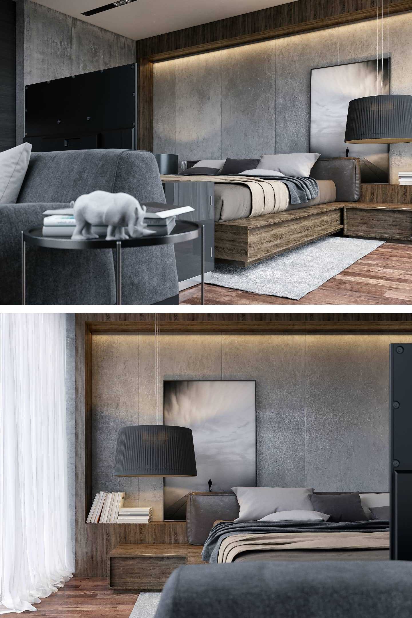 Серые тона при оформлении помогут владельцу расслабиться и насладиться спокойным, глубоким сном