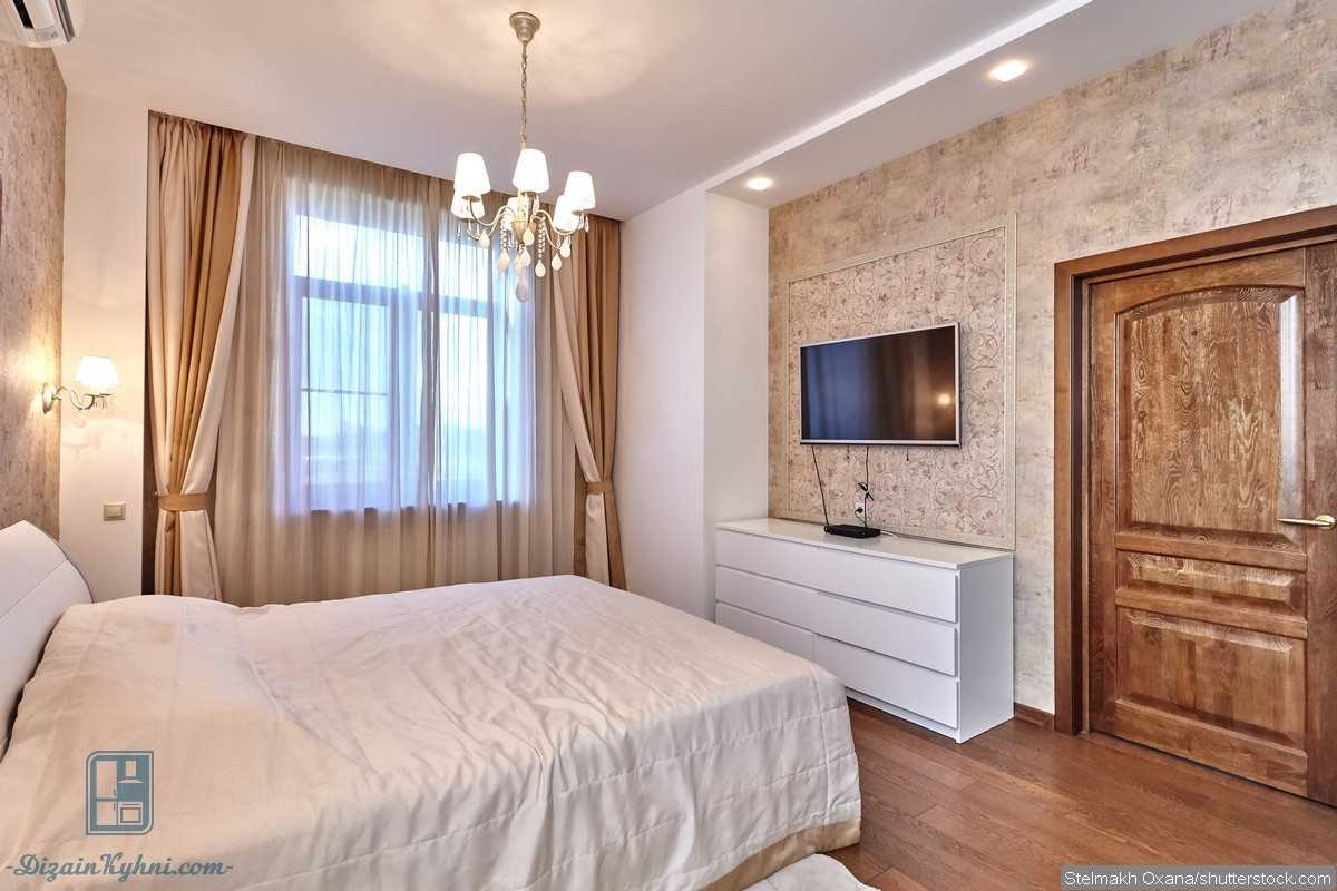 Существуют противники и сторонники размещения телевизора в зоне отдыха. Если вы относитесь к последним, то ставить ТВ надо так, чтобы его было удобно смотреть. Лучше всего повесить с помощью кронштейна на стену напротив кровати.