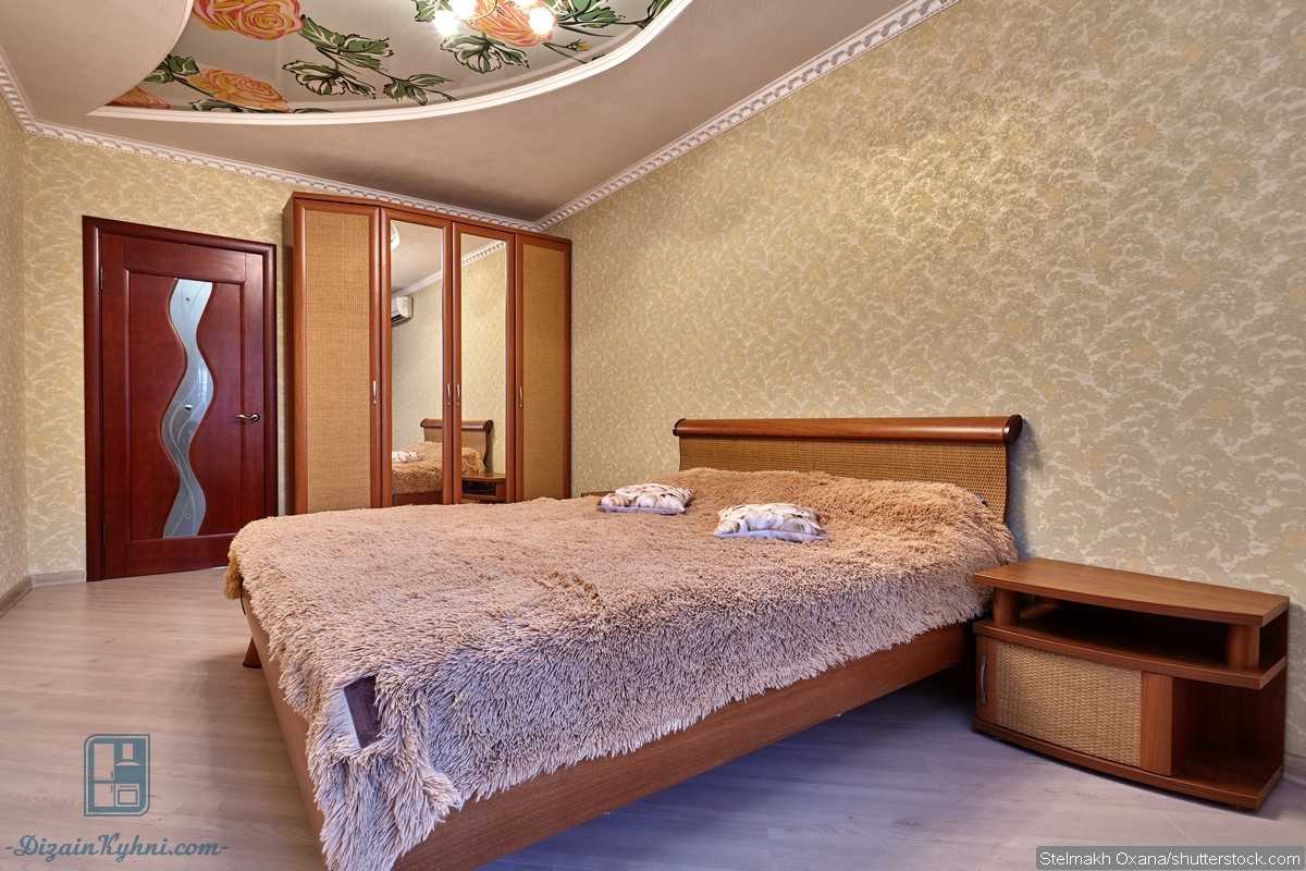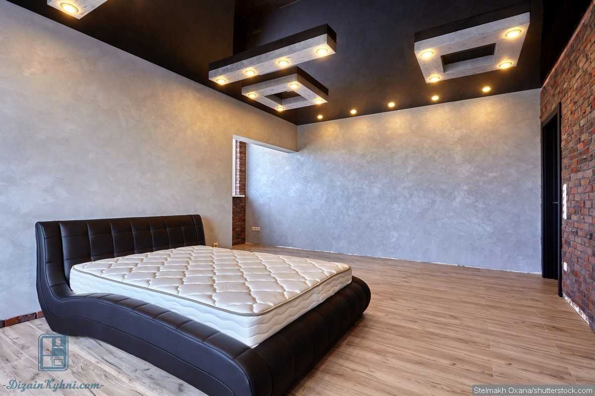 Спальня любит все красивое, по этому идеально будут смотреться натяжные потолки из ПВХ-пленки со сложными конструкциями — колокол, арка, купол. Если устройство будет выполнено из гипсокартона — позаботьтесь выделить нижним уровнем зону над кроватью и гримерным столиком.