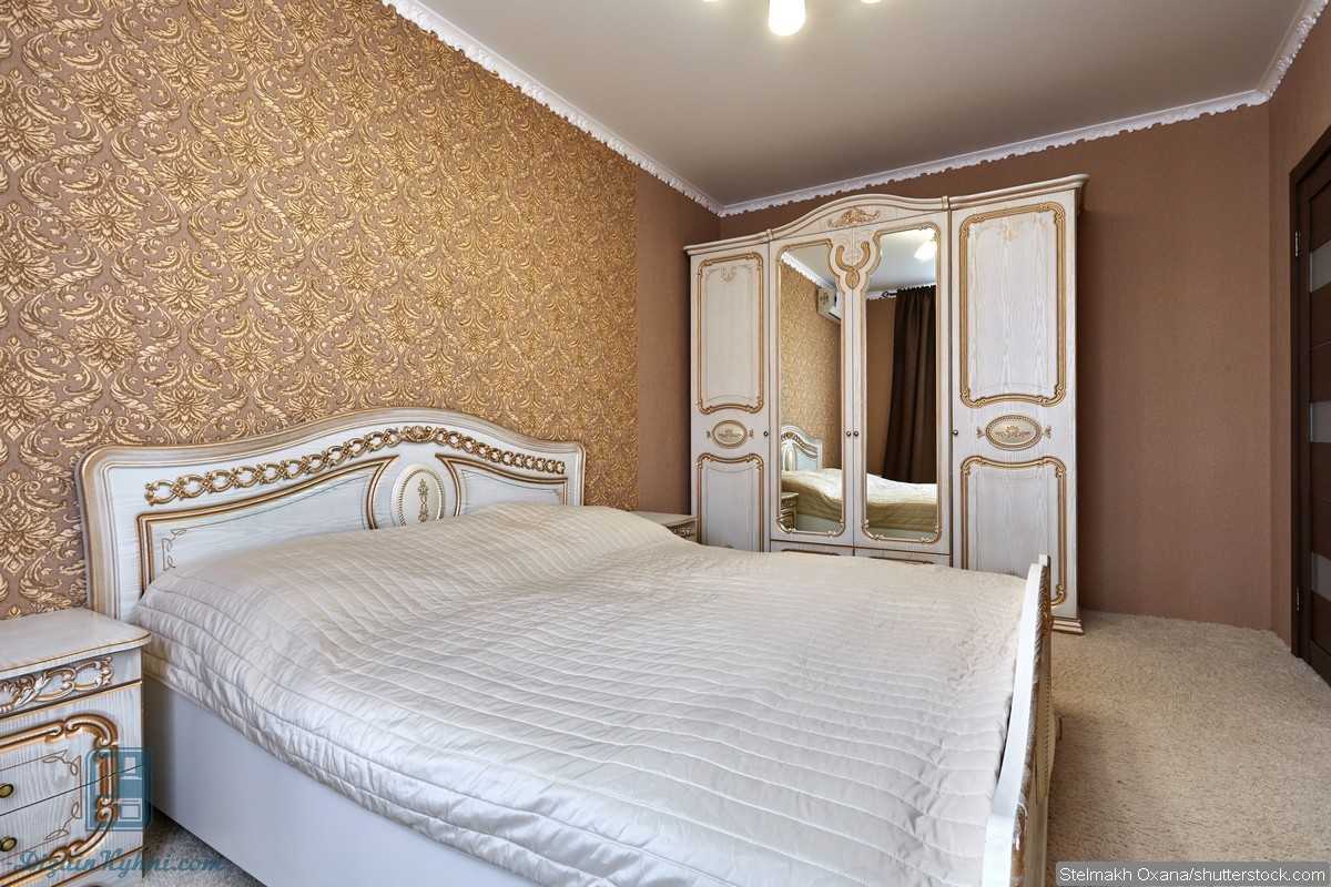 Очень хороший вариант – разбить спальню на отдельные зоны. Сделать это можно при помощи обоев разного рисунка, расцветки, фактуры, добавляя на стены или потолки зеркала и т.д. Таким образом тоже можно визуально изменить объёмы и форму спальни самыми различными способами иногда до неузнаваемости изменив исходное пространство. Вариантов сочетания разнообразных обоев — множество, но чтобы ваша спальня смотрелась идеально, потребуется помощь дизайнера и индивидуальная консультация.