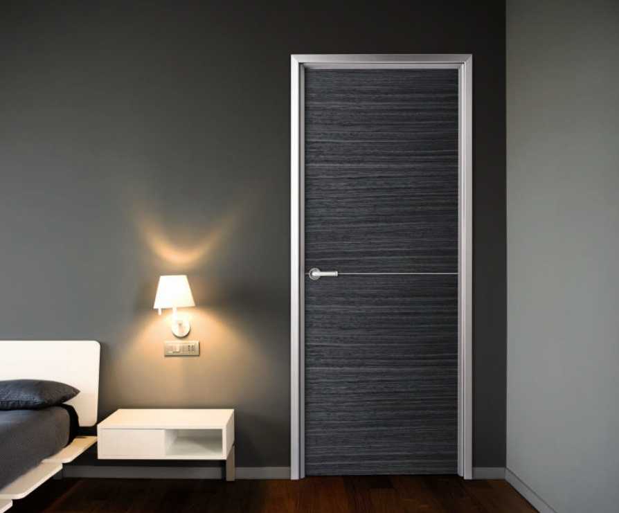 Темно-серые дверные полотна также могут исполнять роль нейтрального элемента комнаты. Чем определенный оттенок серого будет насыщенней, тем лучше он будет исполнять собственную роль. При этом угрюмого вида опасаться не стоит. Если все сделать правильно, темно-серый цвет дверного блока придаст комнате гламурные нотки.