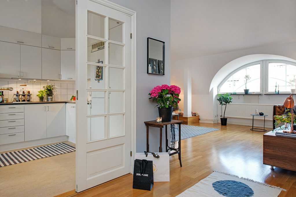 Существует целый ряд стилистических направлений, где темным дверям в интерьере места просто нет. Наиболее ярко выражают свою любовь к светлому цвету дверных полотен скандинавские дизайнеры. Их проекты на первый взгляд просты, но при этом завораживающе привлекательны в своем миксе чистых линий, форм и блеклости цветов. Тут не боятся делать белый цвет ведущим в интерьере. Жилье скандинавов, также как и наше, не отличается просторностью, поэтому светлая палитра в их дизайне – действительно удачный вариант.