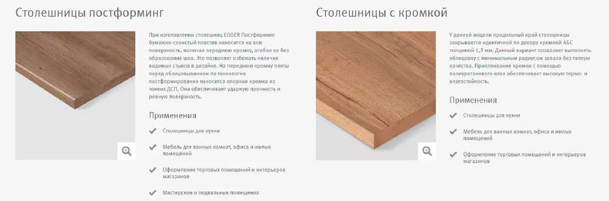 По способу обработки торца пластиковые столешницы бывают с постформингом и с прямой кромкой: