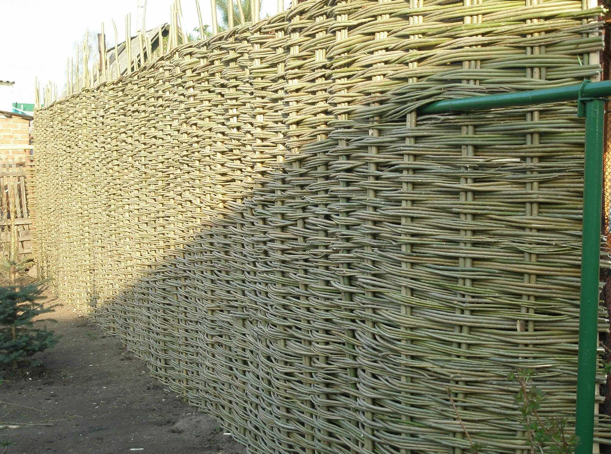 Высокий плетеный забор для дачи