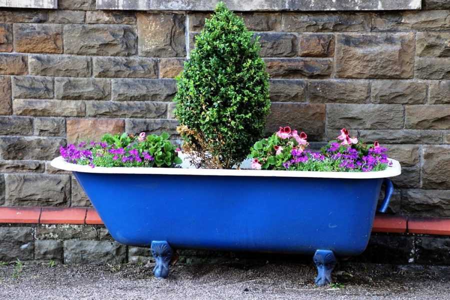 Выброшенные, складируемые в подсобке предметы помогут внести, свежую струю в окружающий пейзаж. Воспользуйтесь изношенными ботинками, поставив в них горшочки или посадив цветы, в последнем случае проделайте дренажные дырочки в подошве.