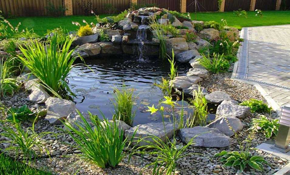 Красивый искусственный водоём из природных материалов станет настоящим украшением для участка