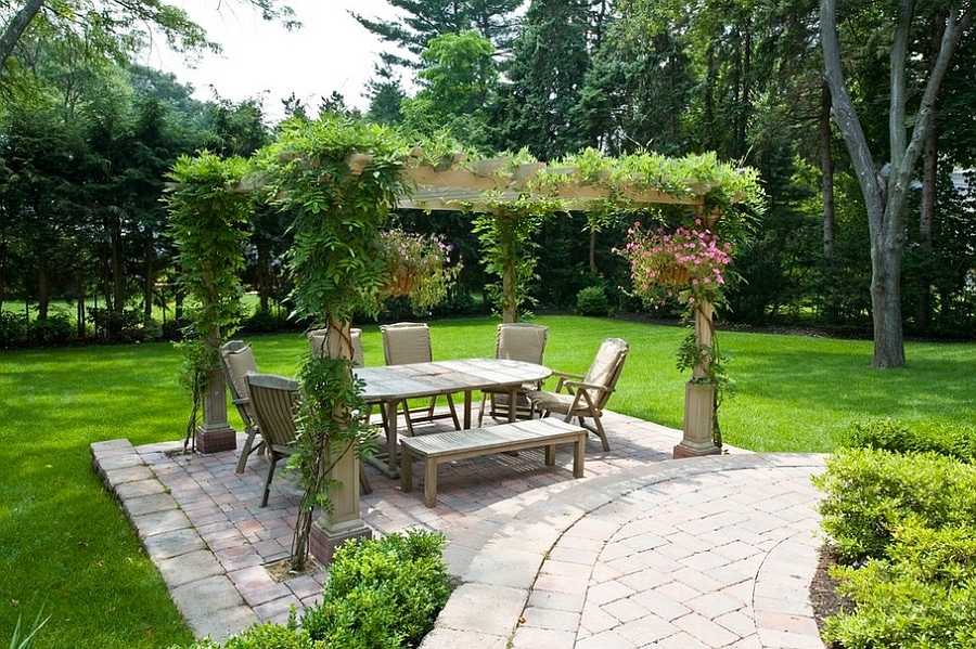 Беседка обвитая вьющимися растениями смотрится невероятно красиво