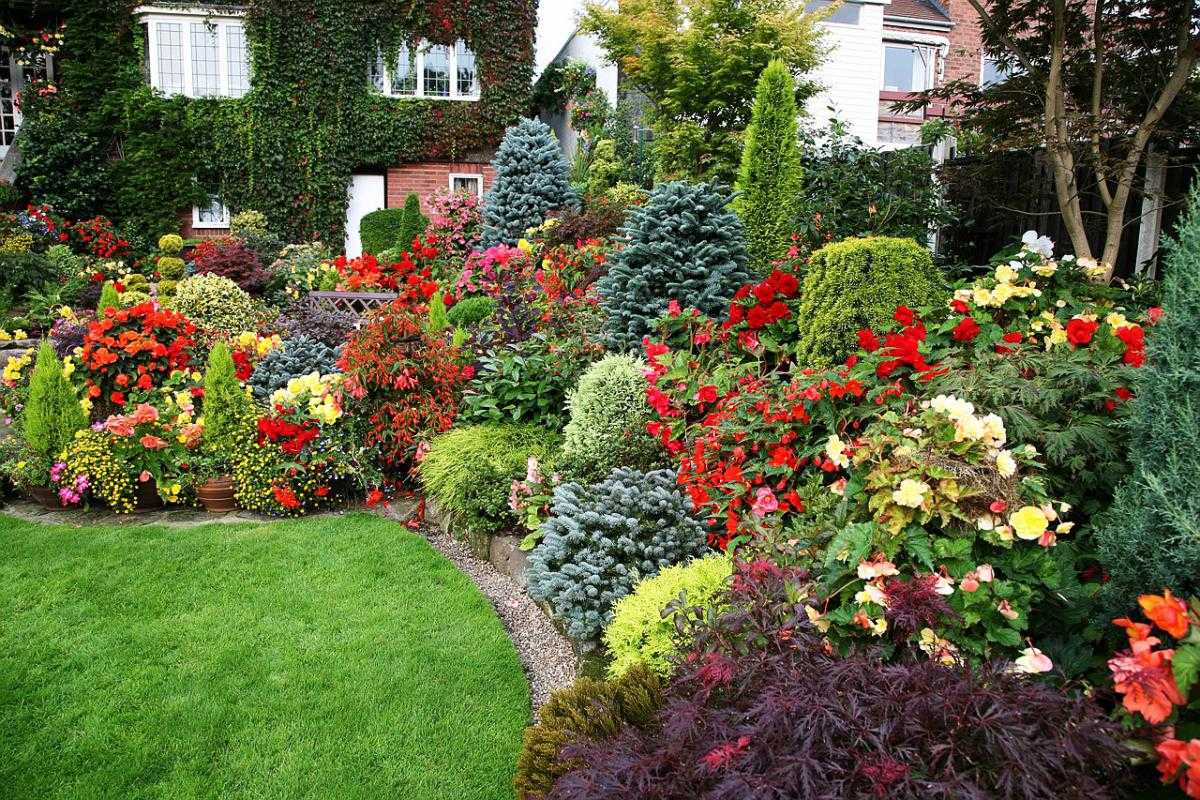 Яркий цветочный ландшафт сада в английском стиле
