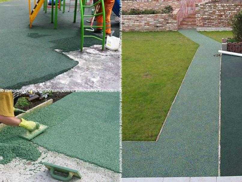 Резиновая крошка может быть уложена на бетон слоем 1см, либо на грунт — толщиной 2см. Укладку на землю оставим профессионалам со специальным инструментом и рассмотрим последовательность укладки своими руками «наливных полов» из резиновой крошки на бетон: