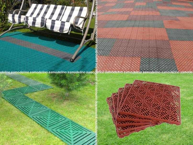 Дорожки и площадки из перфорированных пластиковых модулей имеют привлекательный вид, легко собираются и переносятся на новое место. Плитка из пластмассы может быть уложена на грунт, газон и гравий. При этом основа должна быть достаточно плотной и ровной.