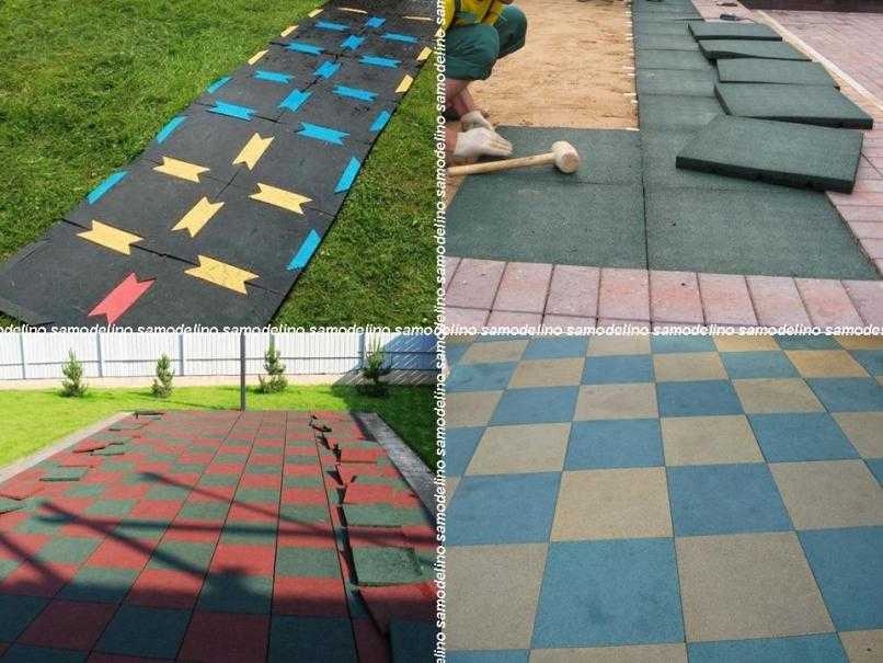 Более серьезное и дорогое резиновое мощение – относительно толстые плиты со втулками для монтажа. Они выкладываются на предварительно подготовленный ровный грунт или бетон. Покрытие хорошо пружинит, не скользит и идеально подходит для детских и спортивных площадок во дворе частного дома.