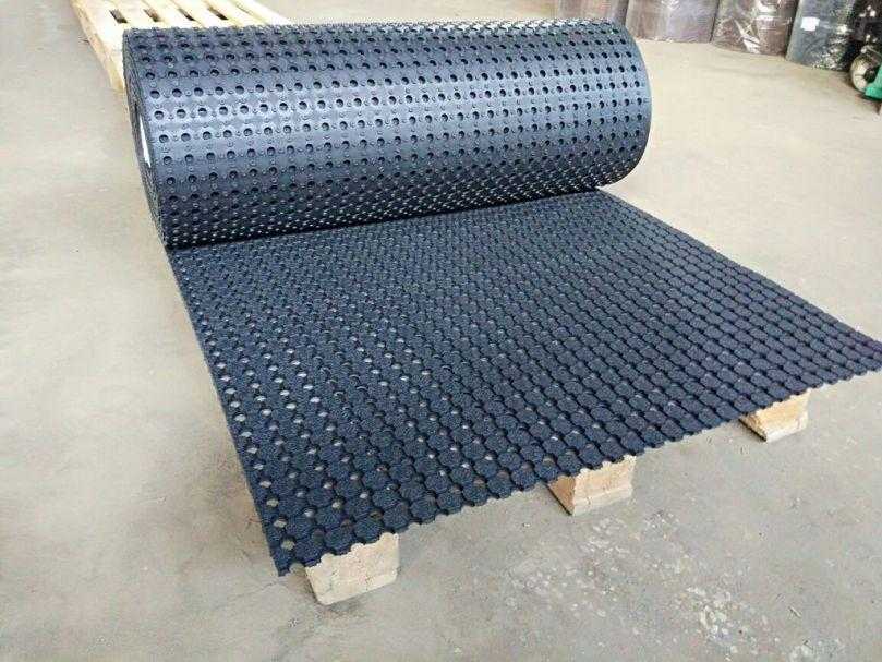 Резиновая лента черного или серого цвета стоит относительно недорого. Однако для укладки потребуется ровное бетонное основание, в противном случае мощение покоробится при эксплуатации. Такой вариант удобен, если Вы не хотите ходить босиком по скользкой холодной серой цементной полосе.