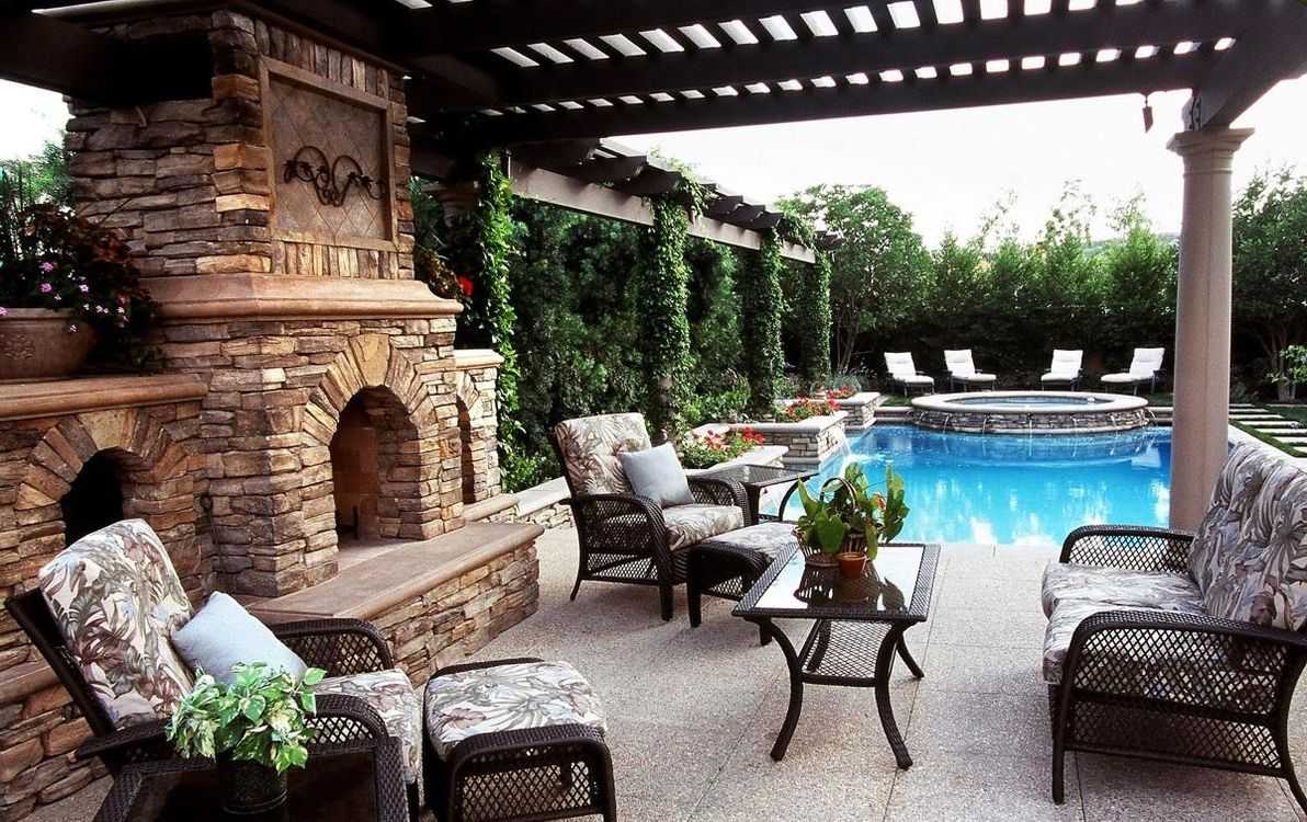 Шикарный двор в средиземноморском стиле с красивой перголой