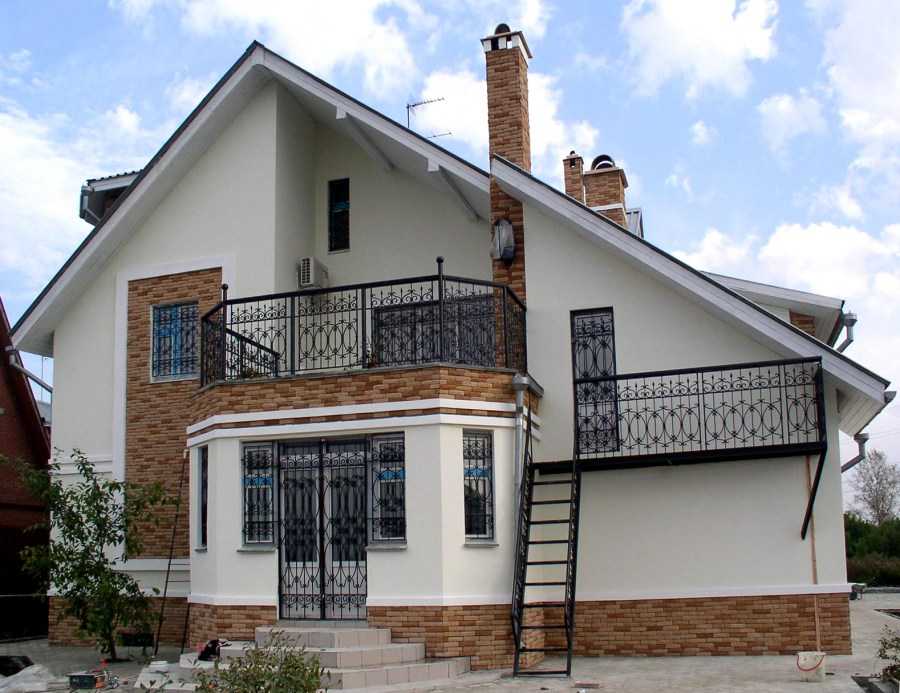 Очень удачно комбинируются элементы декора присущие современным архитектурным веяниям и пришедшие к нам из дальних веков. В отделке фасада эклектического дома превосходно будет смотреться сочетание четких форм и больших окон с вычурными колоннами, рельефными фризами и ковкой.