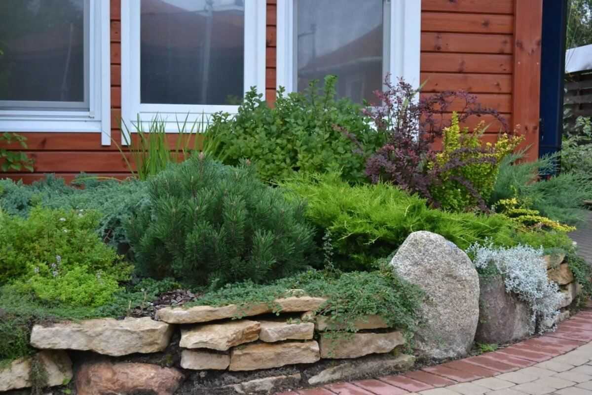 Цветники из хвойных, цветов и кустарников