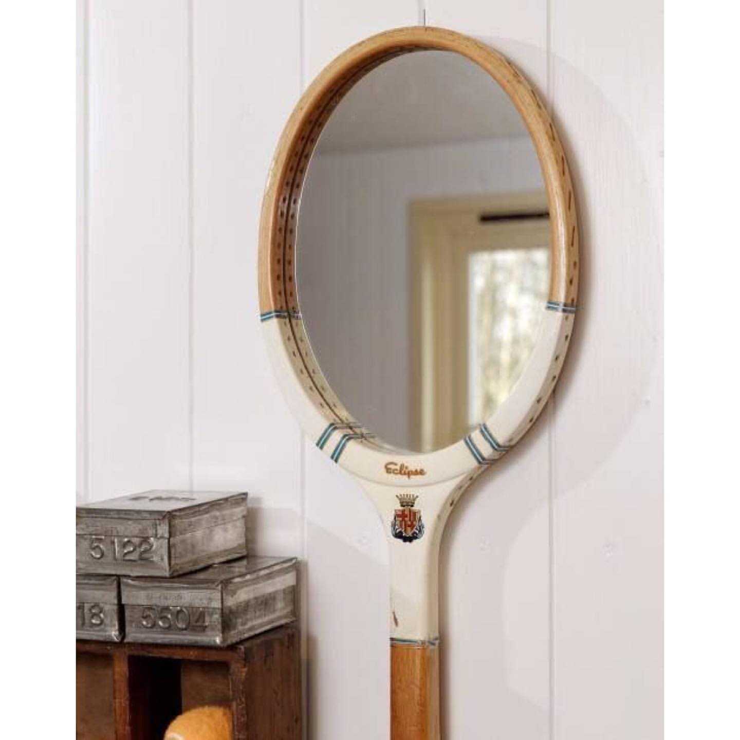 Старые ракетки также могут выступить в качестве обрамления для зеркала. Найти готовое подходящее зеркало может быть проблематично. Но вырезать подходящий размер и форму можно в мастерской, специализирующейся на работе со стеклом.