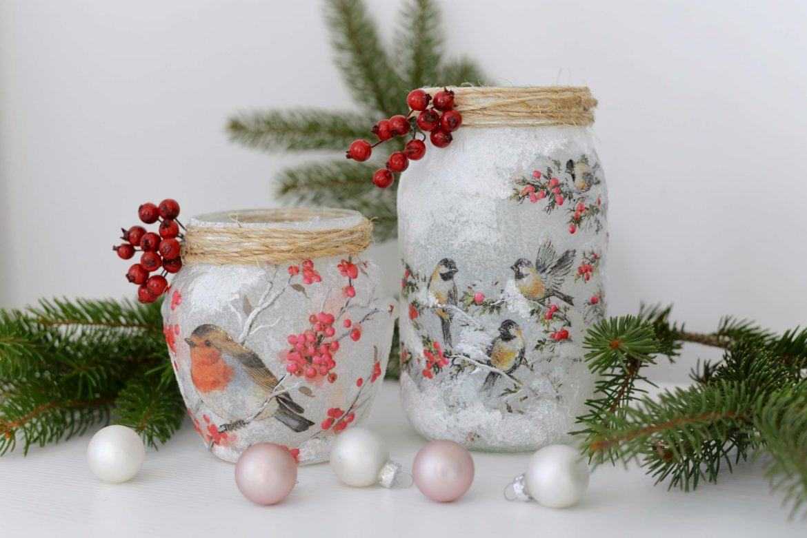 Мастер-класс декупажа стеклянных банок для Рождества: праздничный фонарь