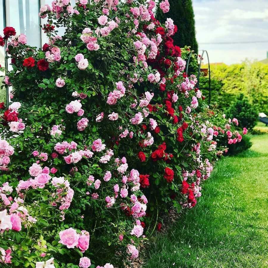 Ну и какой же любитель роз без розария? Клумба из роз — самый лучший элемент декора для двора или сада. Здесь дайте фантазии волю и высадите самые яркие и уникальные сорта почвопокровных роз. Хорошо выглядят цветники из роз круглой формы, угловые клумбы и рабатки. Красочно можно оформить низкорослыми розами передний план цветника с обычной розой. Розарии лучше всего смотрятся в центральных местах сада, у воды, или перед входом.