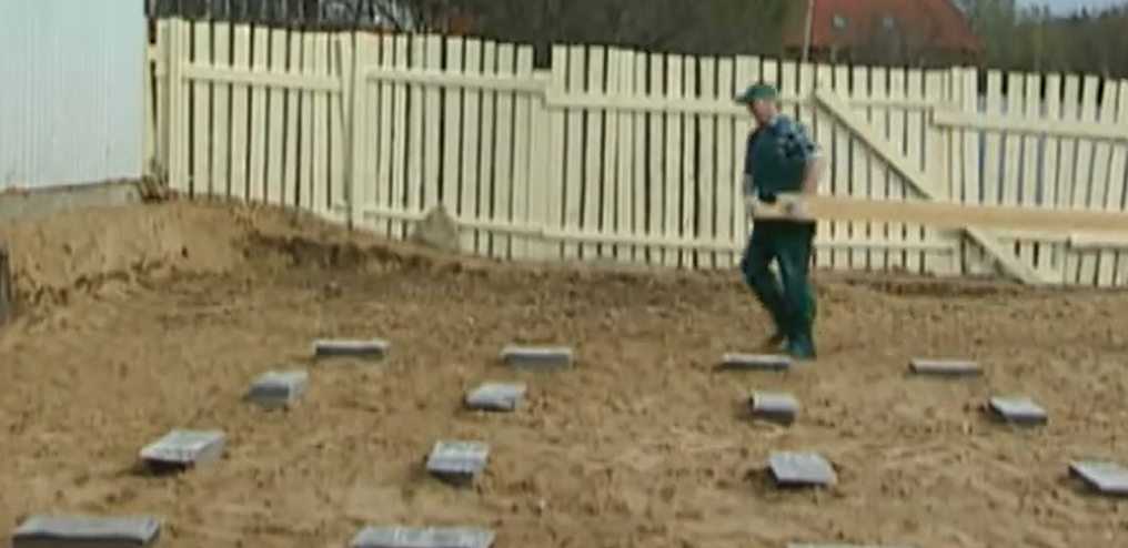 - В первую очередь подготавливается площадка – снимается верхний слой грунта и выполняется разметка.