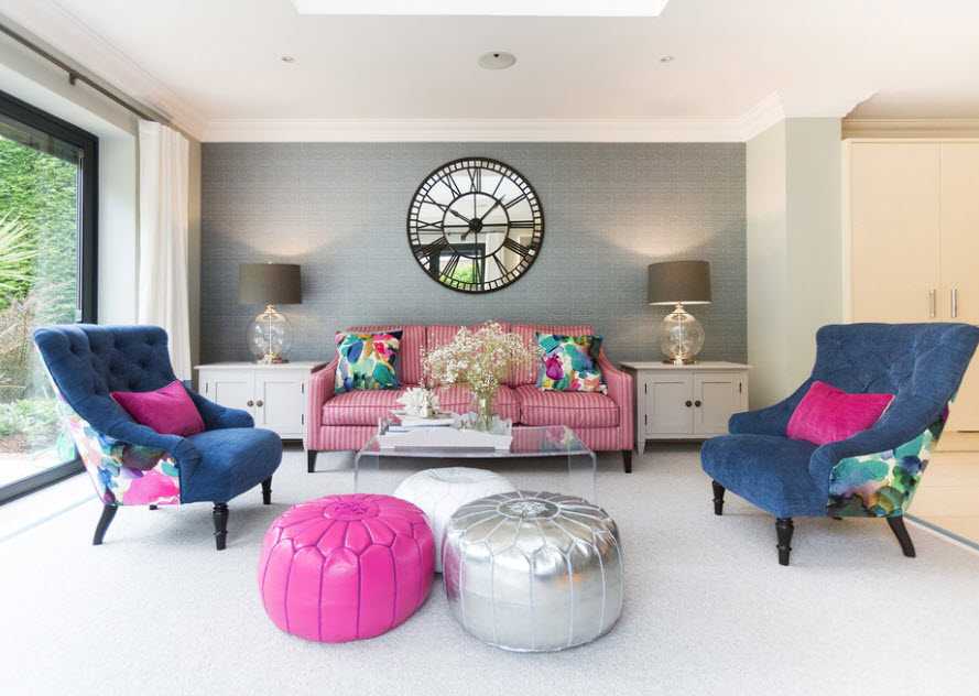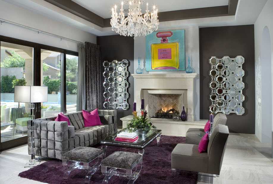 Пуф — это практичное украшение для гостиной. Это необычный предмет мебели — помощник, который может выполнять несколько ролей. Это будет дополнительное место для неожиданного гостя или журнальный столик, на котором вы представите свою коллекцию свечей. Он будет красиво смотреться в гламурном стиле.