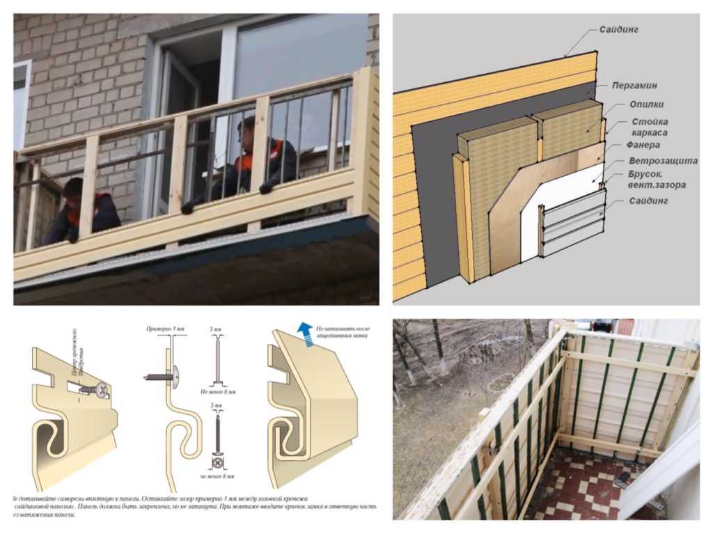 Когда деревянный каркас будет готов, следует начать монтажные работы. Чтобы внешняя обшивка меньше «гуляла», стоит перед установкой оставить сайдинг на балконе. Материал среагирует на температуру воздуха и расширится. Это позволит уменьшить коробление обшивки, практически полностью исключить губительное влияние перепада температуры.