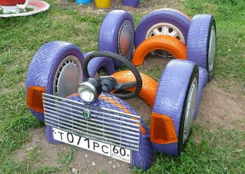 Отличная идея из шин, получился супер кроссовер, отличная спортивная машинка.