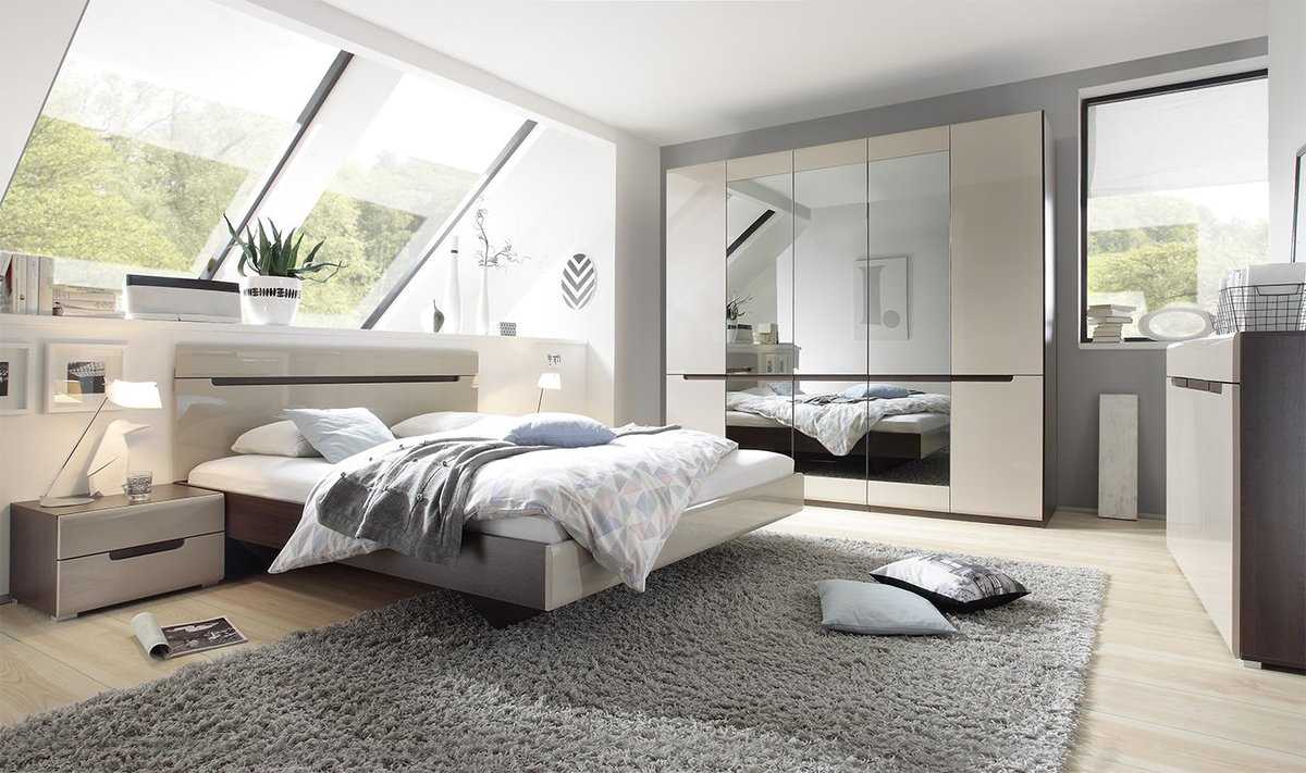 - Спальня — используют много модулей. Одежду и постельное белье хранят в корпусной мебели шкафу-купе. В спальне может быть установлен и угловой шкаф, который не будет загромождать пространство. Комод в корпусной мебели и туалетный столик завершают интерьер и дополняют ощущение комфорта;