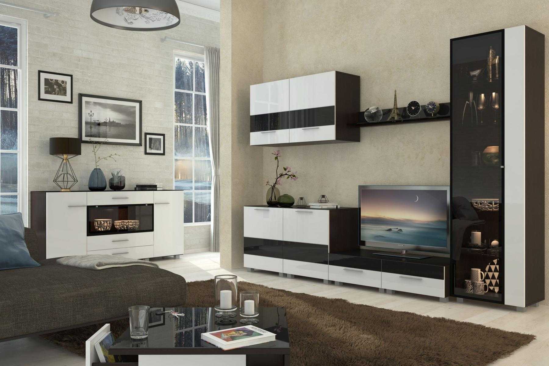 В спальне мебельный ансамбль должен создавать спокойную атмосферу, поэтому смелые эксперименты с дизайном лучше перенести в гостиную. Общая комната дает простор для фантазии. Здесь вполне уместна провокационная эклектика, дерзкий лофт или сверкающий стеклом и металлом хай-тек, необычная угловая стенка.