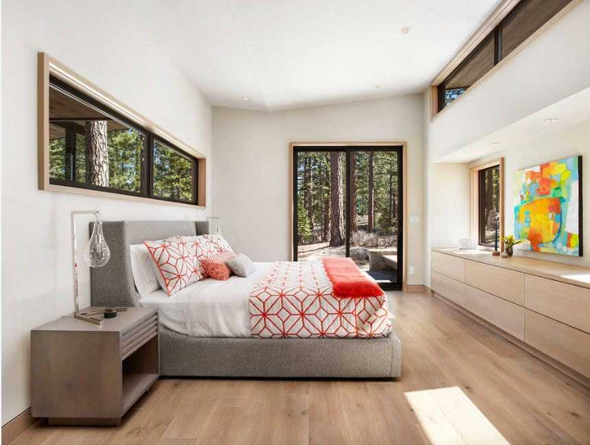 Стильными и элегантными получаются интерьеры, в которых сочетаются различные вариации серого. При этом пол лучше делать в самом светлом оттенке из имеющихся или же в самом темном. Добавить ярких акцентов монохромному помещению позволяют яркие детали. Последние могут быть желтых, оранжевых, малиновых, бирюзовых оттенков.