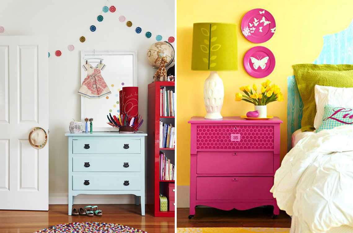 Если все-таки отыскать комод подходящего цвета и размера не удалось, его можно сделать и своими руками. Для этого необходимо всего лишь покрасить уже имеющийся старый комод у любой цвет. При этом совсем не обязательно делать его однотонным. При желании на старом комоде можно изобразить волны, раскрасить его в цвета какого-нибудь лага, сделать камуфляжный рисунок, горошек разного размера, рисунок имитирующий шкуру зебры, просто разноцветные полоски и многое другое. Основным преимуществом такого комода является, что при необходимости его можно легко перекрасить. Сделать комод цветным, тем самым придать ему оригинальности можно просто раскрасить разными цветами его ящики.