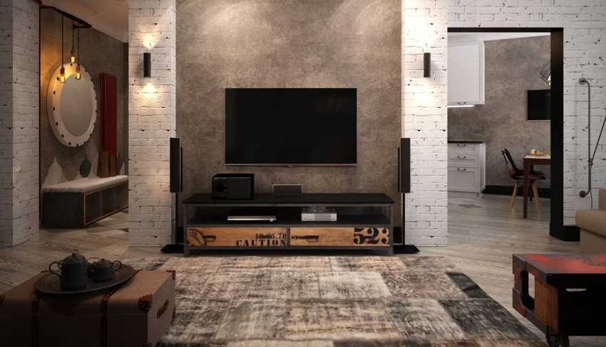 Темная прямоугольная тумба, подходящая для стиля лофт