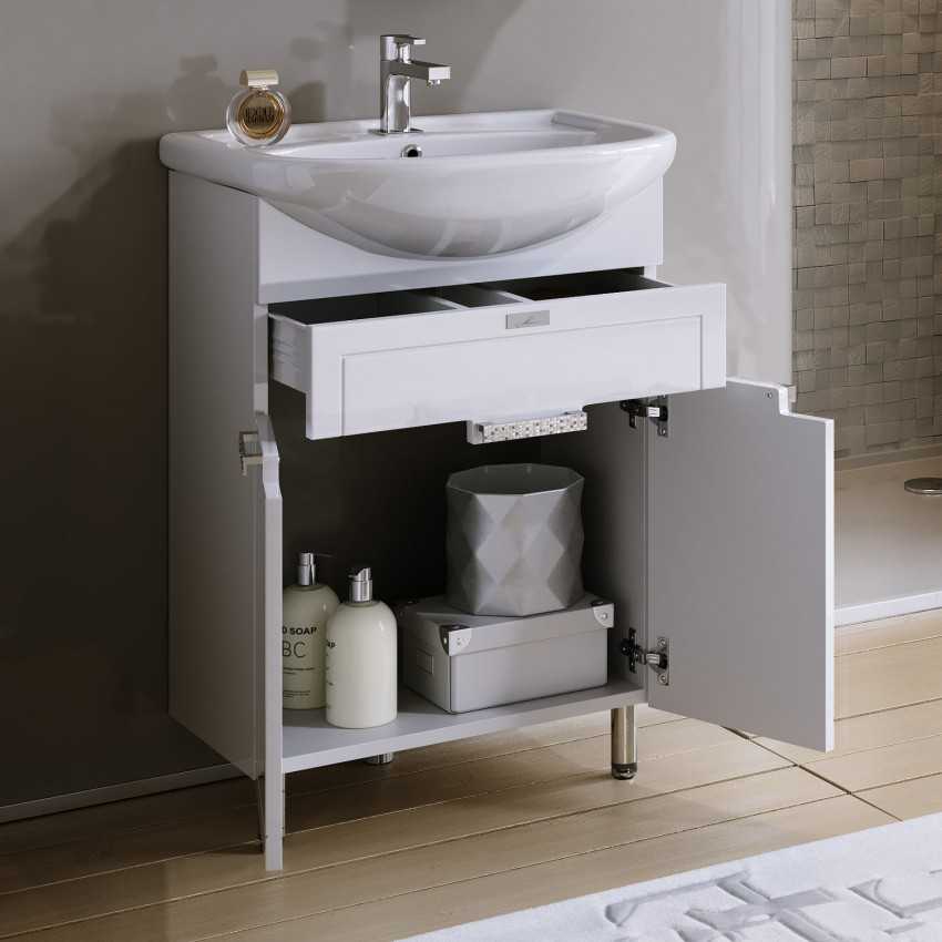 Возможности выбора различных конструкций не имеют ограничений. Тумбы могут состоять из нескольких отсеков, иметь различные конструктивные особенности их функционала и декоративного оформления.