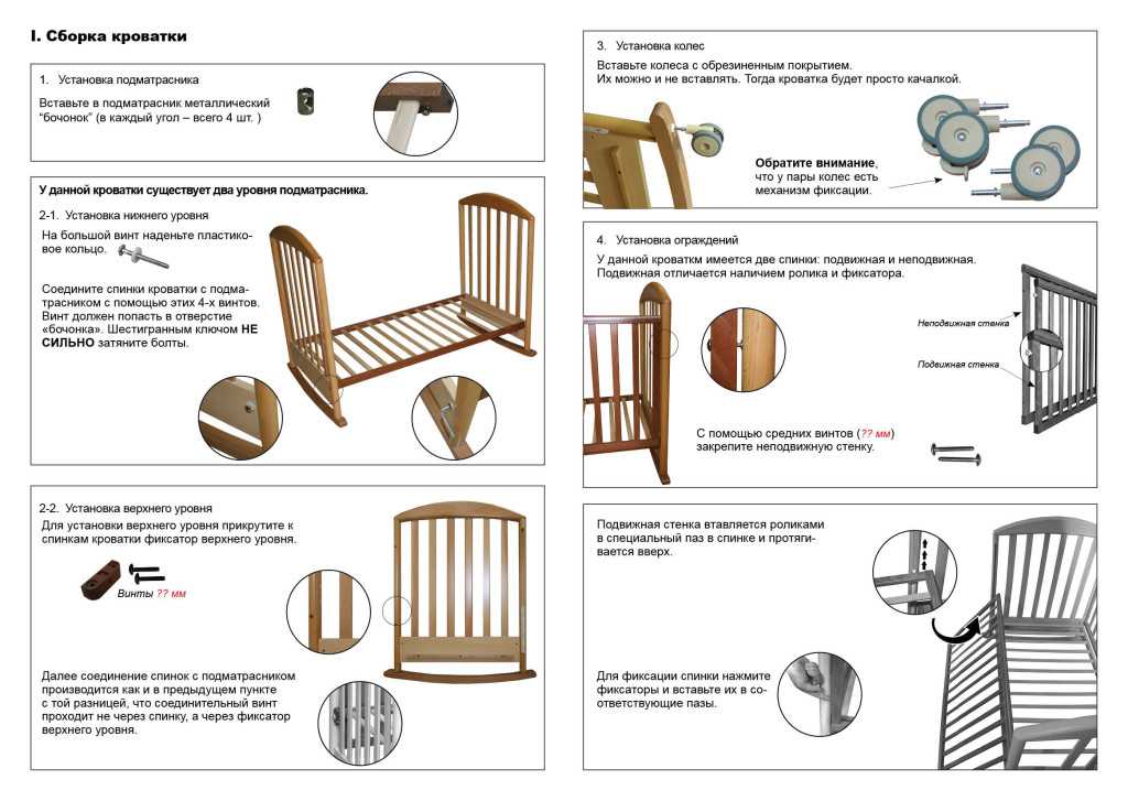 - Вы должны знать, что каждая кроватка может отличаться по сборке. Все зависит именно от купленной модели. Это значит, что читать инструкцию и рассматривать схемы обязательно.