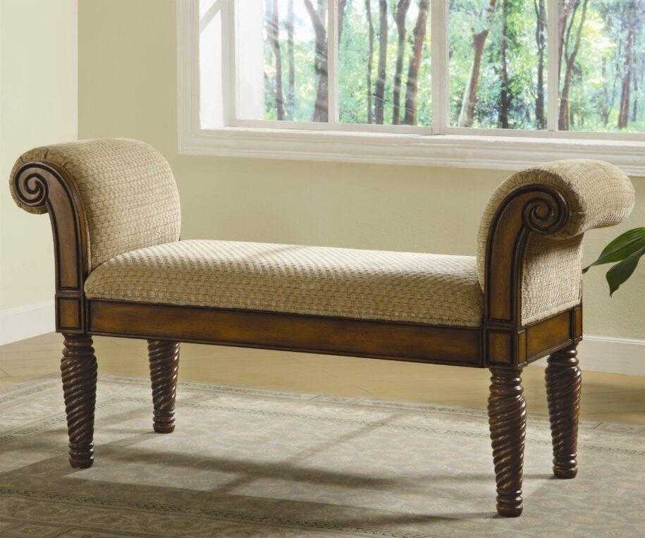 Наполнителями сиденья и спинки маленького дивана в прихожую выступают пенополиуретан (ППУ), латекс, пружинные блоки (зависимые и независимые), поролон. Сиденье может быть и жестким деревянным, тогда для удобства и красоты на него можно положить яркие маленькие подушки.