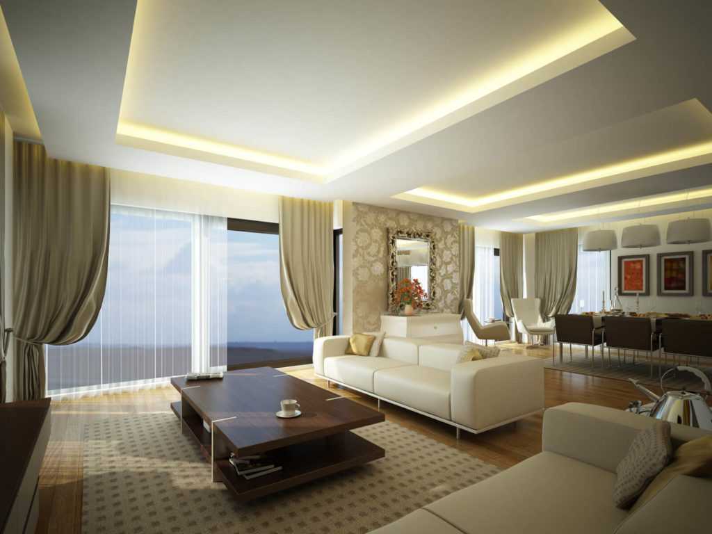 - гостиная. Здесь приемлем любой вариант расцветки в зависимости от обстановки, размера комнаты и других параметров помещения.
