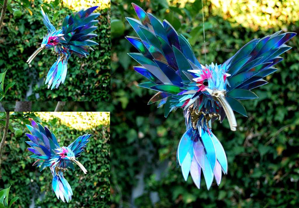 Поделками из дисков для сада могут быть осветительные приборы, панно для украшения садовых домиков, различные фигурки животных и птиц для украшения садового участка и многое другое.
