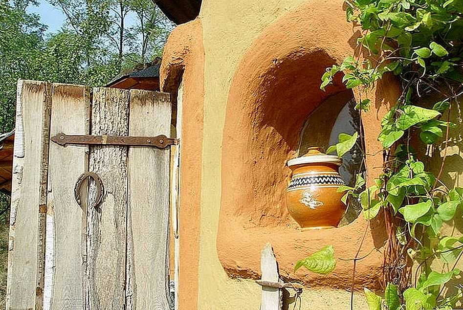 К соломенному сырью добавляют глину для придания армирующих свойств всей конструкции. Глиняный материал добавляет теплоизоляцию зданию за счет придания поверхностям дома свойства теплоаккумулятора. Дома из глины и соломы хороши тем, что в дневное время суток стены и потолок поглощают тепловую энергию, а при наступлении ночи препятствуют поступлению холодных воздушных масс в помещение.