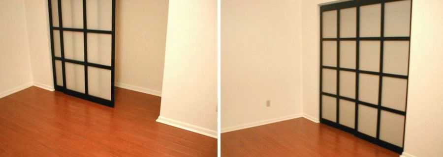 Часть панелей можно закрепить неподвижно, сделав из них стационарную перегородку, оставшиеся при этом будут складываться или двигаться на роликах вдоль направляющих.