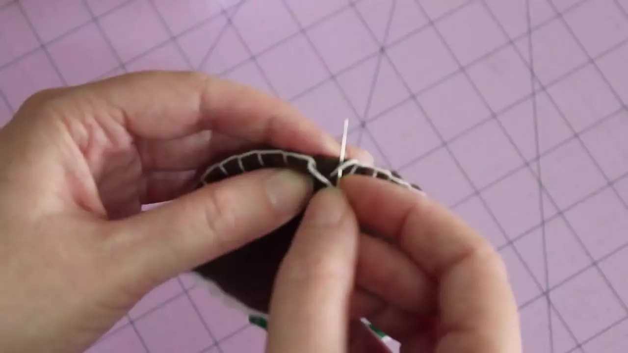 Затем прикрепите белую «глазурь» к передней части орнамента (чтобы концы ленты были внутри), пришейте ее на место с помощью белой нитки.