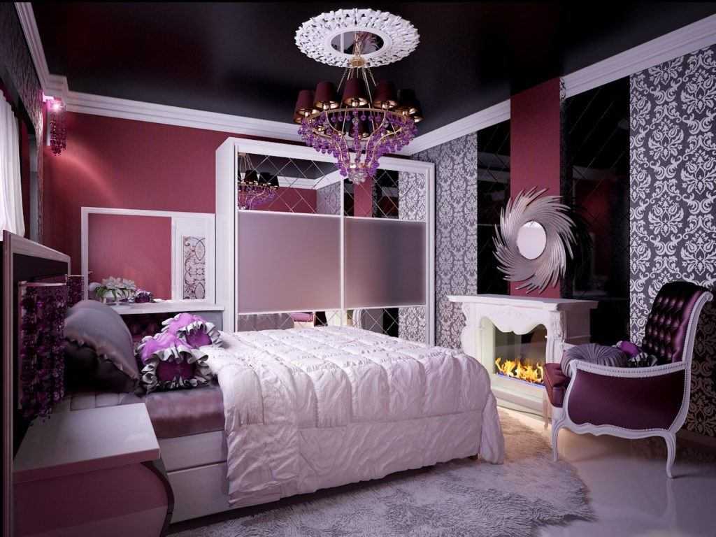 В украшенной таким образом комнате каждая женщина почувствует себя в современном будуаре. Здесь понадобится не только огромная удобная кровать с мягкими подушками, но и красиво оформленное зеркало, мини-бюст для ювелирных изделий, диван или удобное кресло для сиесты в сочном сливовом тоне.