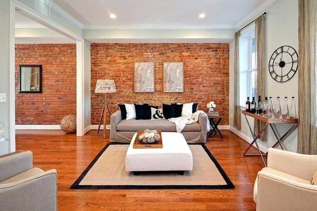 Стена в гостиной, с имитацией грубой кирпичной кладкой